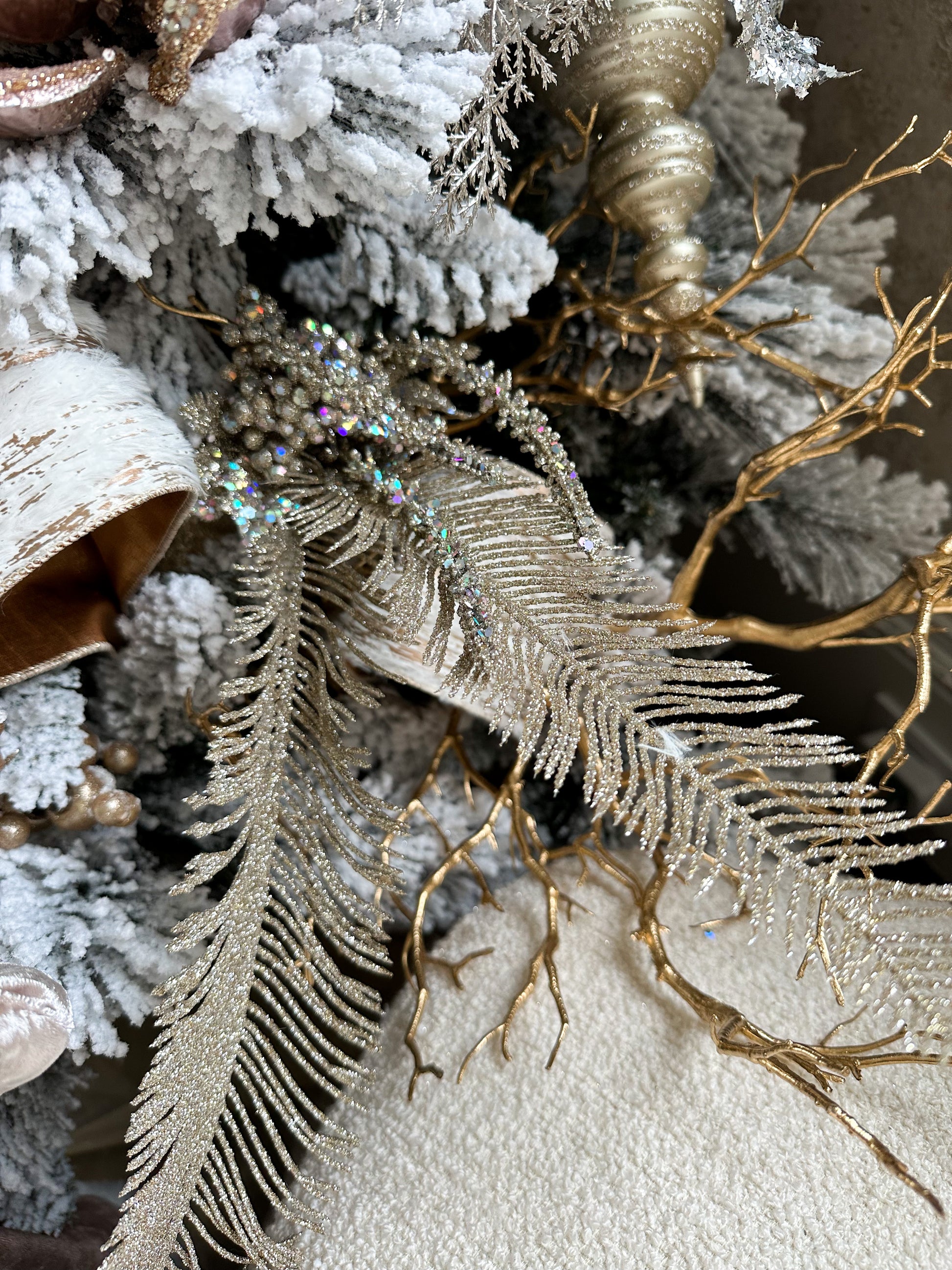 30" Champagne Glitter Fern Berry Spray